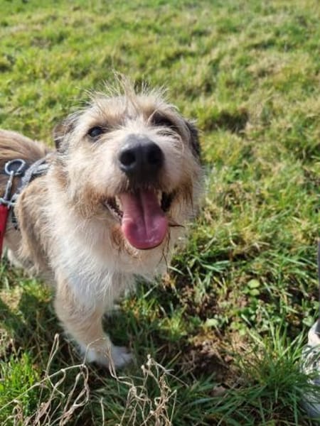Grillo wurde als Welpe von der Strasse eingefangen und lebt nun im Tierheim mit zwei weiteren Rüden im Zwinger. Hündinnen mag er auch. In ihm steckt etwas Jack Russell, daher ist er ein kleiner aber aktiver Hund, der beschäftigt werden möchte. Das Geschirr lässt er sich problemlos anlegen, bei der Leinenführigkeit ist noch Luft nach oben.
