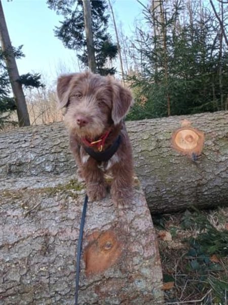 Draußen zeigt sich Marilyn fröhlich, neugierig und bewegungsfreudig. Sie erkundet ihre Umwelt aufmerksam und bringt viel Entdeckerfreude mit. Die vermuteten Puli-Gene zeigen sich in ihrer Cleverness, Lernfreude und ihrem Wunsch nach Beschäftigung. Wie alle jungen Hunde steht sie noch am Anfang ihrer Ausbildung und sollte unbedingt eine Hundeschule besuchen. Auch später wünscht sie sich ein gemeinsames Hobby, das Kopf und Körper auslastet und ihr hilft, Struktur und Fokus zu entwickeln.