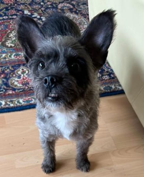 Ich bin gechipt, geimpft, kastriert und entwurmt und reise mit blauem EU- Heimtierausweis. Ich habe keine Rute, wir denken, dass ich schon so geboren bin.