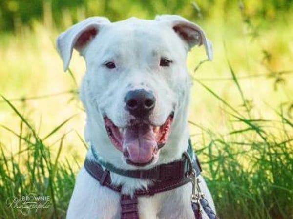 Hier kommt Bones, 40 kg purer Charme im Dogo Argentino/Perro de Presa Canario/-Gewand. Ich bin 63 cm groß und geboren ca. 01.01.2023, also quasi mitten in der Pubertät- nur mit mehr Sabber und weniger Verständnis für persönliche Grenzen.