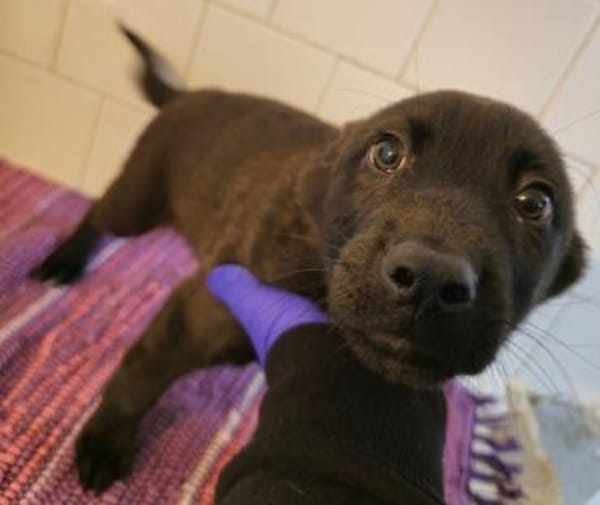 Kivi, geboren im November 2025, ist ein kleiner Mischlingsrüde, der einmal mittelgroß werden wird.