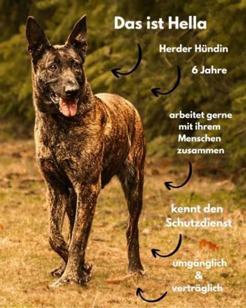 Hella ist eine große, kräftige Hündin. Ihre offene, freundliche und liebevolle Art macht sie zu einem super Familienhund.