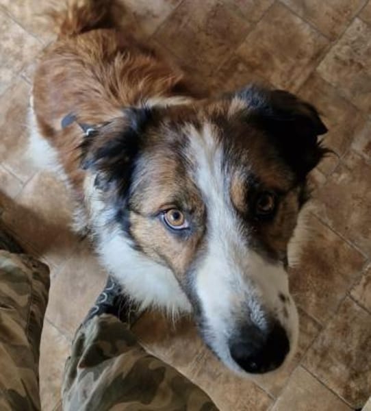 Optik: Wuscheliges, weiß-braunes Fell (erinnert an Sennenhund) und treue, warme braune Augen.