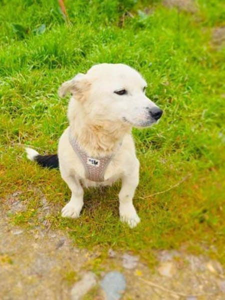 Panda eine liebe Hündin, geboren 2.1.24 wurde mit ihren Welpen gefunden und kam in die Obhut von Tierschützern