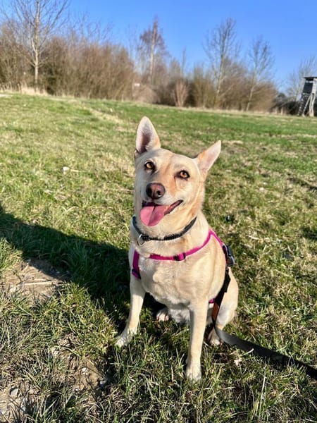 Frieda ist eine kleine, blonde Hündin mit einem ruhigen und sanften Wesen. Auf ihrer Pflegestelle zeigt sich Frieda als aufgeschlossene, neugierige und zugleich sensible Hündin. Sie ist eher ruhig und beobachtend, nimmt ihre Umwelt aufmerksam wahr und orientiert sich stark an ihrer Bezugsperson. Gleichzeitig genießt sie Nähe sehr und liebt ausgiebige Streicheleinheiten ebenso wie entspannte Ruhephasen auf der Couch. Hin und wieder blitzt auch eine kleine, freche Seite durch.