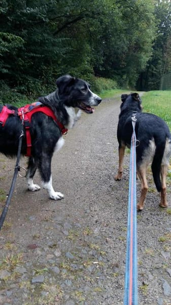 Ich laufe gut an der Leine. Gut, ein bißchen arbeiten müssen wir noch, dass ich auch noch alles ganz perfekt meistern kann, aber wie man sieht, ich bin gelehrig, super sozial und liebe einfach alles was da so auf mich zukommt. Fremden Hunden gegenüber zeige ich mich anfangs etwas lauter, muss denen erst mal zeigen, dass ich jetzt hier bin.