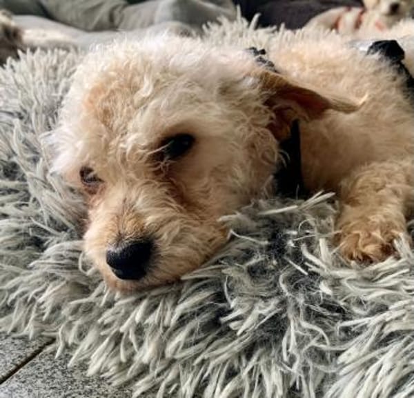 4,5 Monate jung, nur 2,7 kg leicht und 21 cm klein, ein winziger Malipoo, der verwahrlost, Halb verhungert im Tierheim in Ungarn gelandet ist und einfach nicht begreift, warum die Welt plötzlich so kalt geworden ist.