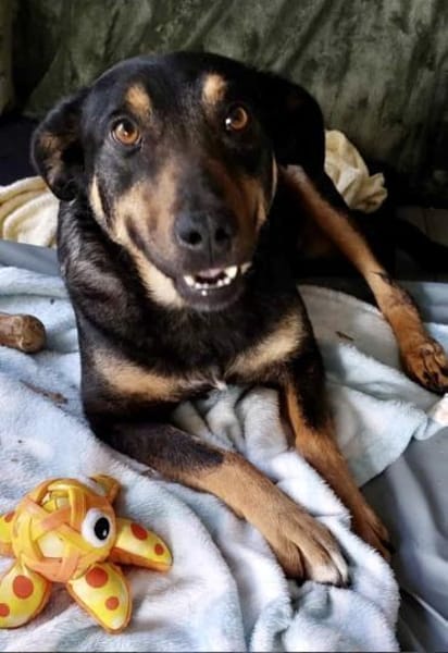 Santana hat noch Zwangspause, damit die Bruchstelle stabiler wird. Danach wird sie durch Physio gefördert. Wir denken sie wird ein Rollihund werden.