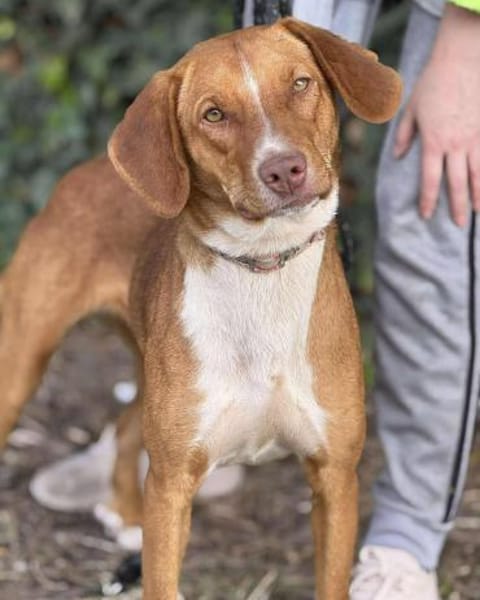 Bibi ist eine sehr liebenswerte, freundliche und noch typisch verspielte junge Hündin., sie ist menschenbezogen und möchte gefallen. Sie ist normal aktiv und läuft bereits an der Leine. Ihr Jagdtrieb ist nicht ausgeprägt, darum wurde sie wahrscheinlich auch ausgesetzt. Sie lebte vor Ort mit Katzen zusammen, daher ist Bibi auch bereit, sich mit Katzen anzufreunden.