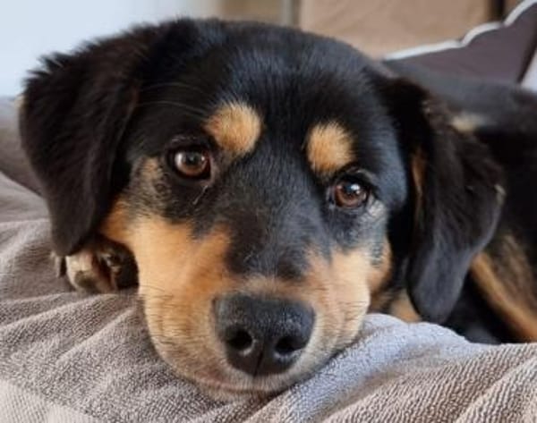 Ich bin zufällig gerade durch das Tor vor das Tierheim gegangen und sehe einen Welpen völlig verängstigt vor dem Eingang sitzen. Als ich versuchte, ihn auf den Arm zu nehmen, ergriff er sofort die Flucht.