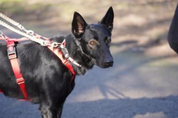 Beim Spaziergang läuft Zorro brav an der Leine. Straßenverkehr oder viele Menschen stören ihn dabei nicht, er lässt sich davon nicht aus der Ruhe bringen.