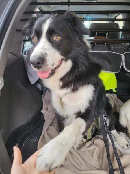 Autofahren ist für Arkani kein Problem. Er steigt auch selbständig ein, sowohl auf den Sitz als auch in seine Box.