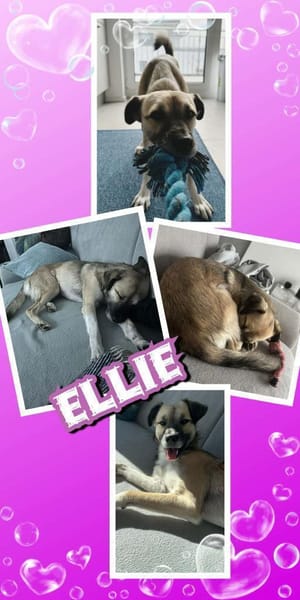 Ellie ist eine junge, bildschöne Hündin, die in den letzten drei Monaten bewiesen hat, was für ein Potenzial in ihr steckt. Sie ist eine absolute Abenteurerin, die es liebt, draußen die Welt zu entdecken. Ob sie über Baumstämme balanciert, mutig darauf springt oder im Haus entspannt alle Viere von sich streckt, um sich am Bauch kraulen zu lassen Ellie ist mit vollem Herzen dabei.