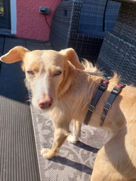 Unsere liebe Sandy ist eine sehr ruhige und zurückhaltende Hündin. Anfangs reagiert sie auf fremde Menschen schüchtern und braucht erstmal ein wenig Mut um zu Vertrauen. Sie ist eine ganz besonders sanfte Hündin und genießt Streicheleinheiten sowie das gemeinsame kuscheln auf der Couch. Ein bereits vorhandener Hund würde ihr das Einleben sehr erleichtern. Auch Katzen sind kein Problem, Sie lebt mit drei Samtpfoten auf Pflegestelle zusammen. Sandy ist stubenrein und fährt gerne im Auto mit. Spaziergänge in der Natur machen ihr viel Freude, aber auch da braucht sie die ersten Tage die Sicherheit ihrer Menschen. Sie läuft ruhig an der Leine und ist bei Hundebegegnungen absolut verträglich. Laute und für sie fremde Geräusche verunsichern sie noch etwas, lässt sich aber schnell wieder aus der Situation bringen.