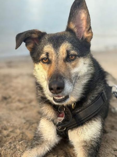 Er zeigt kein Jagdverhalten und kennt bereits andere Tiere wie Pferde, Katzen, Hühner und Kaninchen. Ein souveräner Ersthund wäre für ihn toll, ist aber kein Muss.