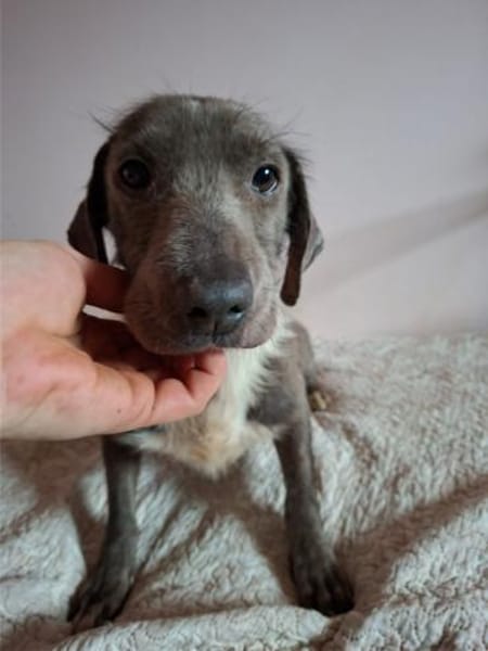Silver kam aus einer Tötungsstation. Er war zu Beginn sehr vorsichtig und sein Körper gezeichnet von seiner Geschichte. Doch Silver ist ein unglaublicher Kämpfer mit der Sicherheit und Wärme, die er in seiner liebevollen Pflegestelle findet, taut er langsam auf. Seine fehlenden Haare sind vermutlich einer seltenen ungarischen Rasse geschuldet, die teilweise haarlos ist.