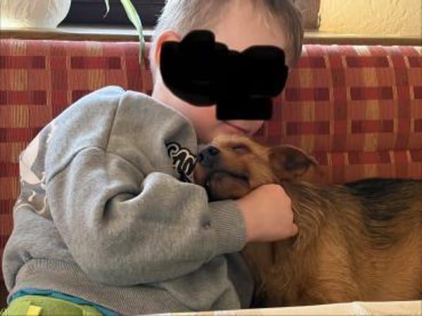 Widdow ist eine ganz liebe, Mega, mega Kinderliebe, kleine Hündin.