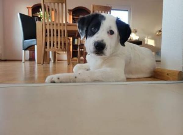 Yeti ist welpentypisch verspielt, gerne wird alles ins Maul genommen und verschleppt und natürlich fehlt ihm noch die gesamte Grunderziehung.