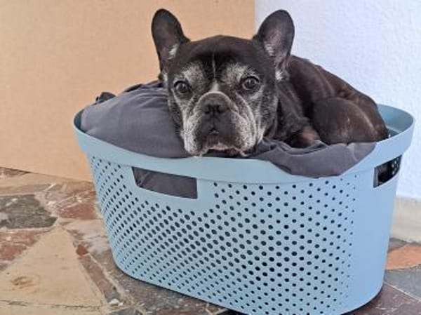 Ich bins Nala! Wenn du mich anschaust, schaue ich dir mit meinen kugelrunden Augen direkt ins Herz. Ich bin eine französische Bulldogge, 6,5 Jahre jung, und habe ein dunkles Fell, das richtig schön glänzt. Das Besondere an mir? Meine Pfoten und mein kleines Näschen, die sind silbern! Wie ein kleiner Mondbär, sagen manche.
