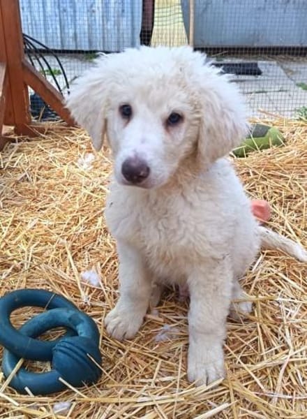 Drei dieser süßen Kleinen warten nun noch auf ihre Menschen. Die drei zeigen typisches Welpenverhalten: Sie sind verspielt, neugierig und möchten am liebsten die Welt entdecken. In ihnen steckt vermutlich ein Mix aus Kuvasz und Labrador. Der Kuvasz gehört zwar zu den Herdenschutzhunden, kann aber bei guter Sozialisation ein wunderbarer Familienhund sein ebenso wie der Labrador. Deshalb können wir uns die Welpen, bei liebevoller Erziehung und einem passenden Umfeld, auch gut in Familien mit Kindern vorstellen.