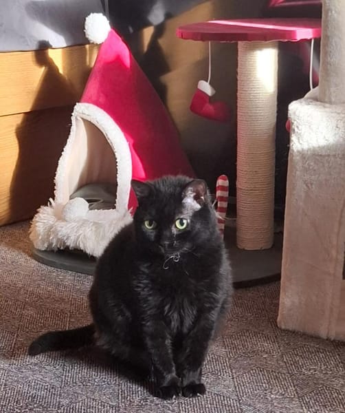 Da eine schwarze, blinde, erwachsene Katze so gut wie keine Chance auf der Insel hat kam sie am 16.11.2025 nach 46119 Oberhausen auf unsere Pflegestelle.