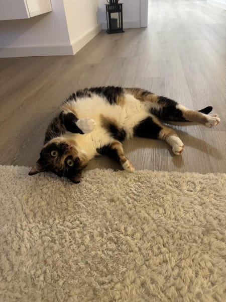 Flora (dreifarbig) ist anhänglich, menschenbezogen und unglaublich lieb. Bei ihrer Pflegestelle zeigt sie sich total mutig, nicht schüchtern und will immer mitten im Geschehen sein. Sie ist super neugierig und erkundet gern neue Dinge und hat ein großes Interesse an allem, was um sie herum geschieht. Auch gegenüber fremden Menschen ist sie sehr schnell absolut offen und begrüßt jeden freundlich. Sie liebt Nähe und folgt ihren Menschen aktiv überall hin. Gerne läuft die Schmusemaus einem von Raum zu Raum hinterher und legt sich immer genau dorthin, wo man sich gerade aufhält. Sobald sie jemanden etwas besser kennt ist sie eine total verschmuste Maus und genießt Kuscheleinheiten total. Wenn sie spielen will, flitzt sie wie ein kleiner Wirbelwind durch die ganze Wohnung. Auch vor lauten Geräuschen (wie Föhn, Staubsauger, etc.) hat sie keine Angst. Sie bleibt immer total neugierig und entspannt. Insgesamt ist sie eine offene, mutige Entdeckerin mit einer ganz freundlichen und sanften Seele.