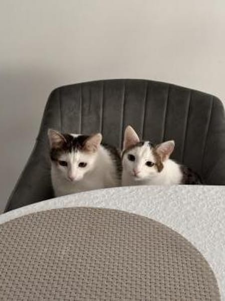 Diese süßen Brüderchen Felix und Findus haben wir in Geisenheim zusammen mit ihrer lieben Mama und einem weiteren Brüderchen auf dem Friedhof gefangen. Felix (weiß mit grauem Mittelscheitel ) und Findus ( weiß mit chicer Ponyfrisur ) sind Angang bis Mitte Juni geboren und haben sich seinerzeit schnell in der Pflegestelle eingelebt.