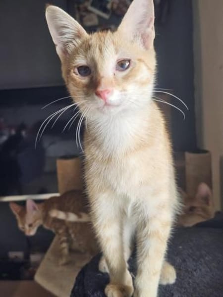 Charakter: Cinnamone und seine Schwester Anne Bonny hatten einen schwerten Start ins Leben. Sie wurden verwaist und mit Katzenschnupfen infiziert aufgefunden. Jedoch hatten sie das große Glück, bei unserer tollen Pflegemama Ines liebevoll aufgenommen und aufgepäppelt zu werden. Cinnamone ist ein tolles Kitten: lebendig und verschmust. Leider leidet er womöglich unter chronischem Katzenschnupfen, er ist aber ein großer Kämpfer und möchte leben und vor allem gliebt werden. Es wäre toll, wenn er zusammen mit seiner Schwester Anne Bonny adoptiert werden könnte. Grundsätzlich kann er aber auch in einen Mehrkatzenhaushalt vermittelt werden, in welchem alle vorhandenen Katzen gegen Katzenschnupfen geimpft bzw. auch an Schnupfen erkrankt sind. In einem liebevollen, sich sorgendem Zuhause kann sich sein Immunsystem prima entwickeln, und er kann der Krankheit die Stirn bieten.