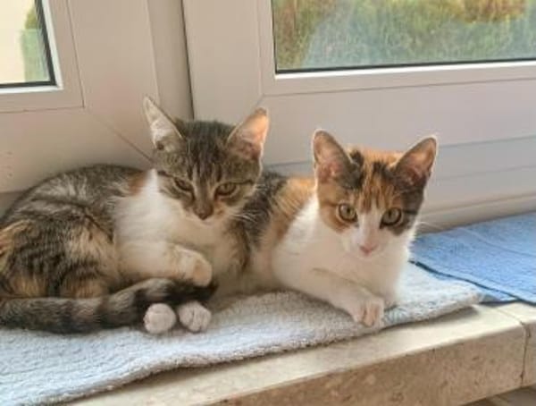 Die zwei zuckersüßen, Anfang August 2025 geborenen Katzenkinder wurden in einer Parkbucht ausgesetzt, leider Alltag in Rumänien. Doch es gibt auch sehr viele tierliebe Menschen dort, was das kleine Häuschen, welches dort schnell für sie errichtet wurde, zeigt. Zum Glück fanden wir sie, bevor etwas passieren konnte, und brachten sie bis zu ihrer Ausreise auf einer Pflegestelle vor Ort unter. Mittlerweile erfreuen sie sich der liebevollen und hingebungsvollen Obhut auf ihrer Pflegestelle hier in Deutschland und sind bereit in ein eigenes Zuhause umzuziehen. Ihre Köfferchen sind gepackt und wir haben ihnen versprochen das große Los für sie zu finden.