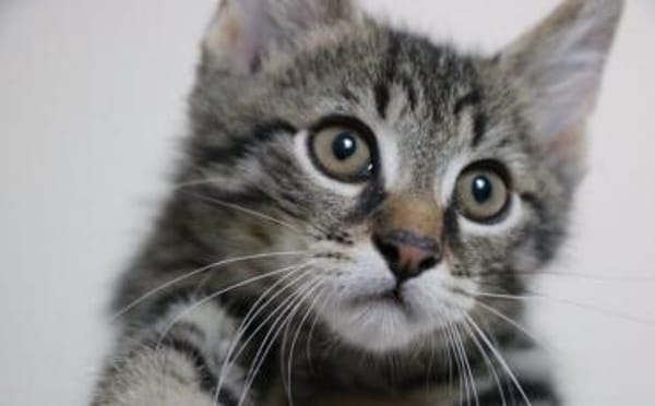 Dieser kleine Kerl hatte keinen leichten Start ins Leben: Mit nur 2 bis 3 Wochen wurde er zusammen mit seiner Mutter in strömendem Regen ohne Unterschlupf gesichtet. Wahrscheinlich wurden sie kürzlich ausgesetzt. Trotz allem zeigt Karlsson sich sehr freundlich und voller Vertrauen.