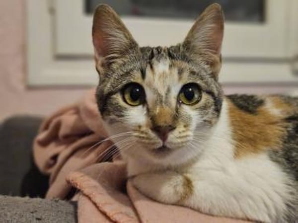 Sara ist eine super liebe, freundliche und anhängliche Katze. Sie ist sozial mit anderen Katzen und lebt auf PS mit ihrer Freundin Gisela (schwarz und ängstlich). Beide mögen sich und könnten auch zusammen umziehen. Sara ist kastriert, gechipt, entwurmt. negativ getestet auf Felv und FIV und geimpft. Juli 2025 geboren. Sara ist sehr anhänglich. Kinder sollten erwachsen sein da etwas grobmotorisch.