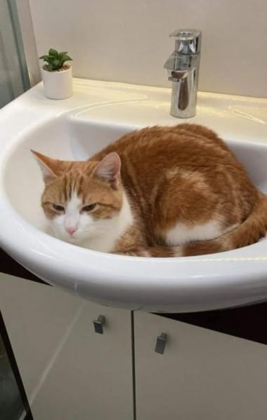 Filip hat einen -kleinen Tick-: er schläft gerne im Waschbecken und spielt mit Katzenspielzeug, besonders mit wollähnlichen Bällen und Katzenminze-Mäusen.