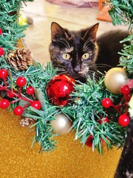 Diese wunderschöne Schildpatt-Katze heißt Aster, geb. 5/25. Sie kam mit ihrer Mutter Daisy und ihren 3 Schwestern im Alter von etwa 10 Wochen ins Tierheim. Leider waren die Kleinen nicht sozialisiert und hatten große Angst vor Menschen. Das wurde noch verschlimmert, als sie kurz nach ihrer Ankunft an Ringelflechte erkrankten und wir den Kontakt auf ein Minimum beschränken mussten. Nach einigen Wochen Behandlung erholten sie sich alle gut und wir konnten mit der Sozialisierung beginnen. Aster war schon immer das selbstbewussteste Kätzchen der Familie. Obwohl auch sie anfangs viel Angst vor Menschen hatte, ist sie mittlerweile sehr zutraulich geworden. Sie kommt uns freudig entgegengelaufen, schmiegt sich an unsere Beine und genießt die Streicheleinheiten. Sie ist ein superliebes Kätzchen, das gerne mit seinen Schwestern spielt. Sie lässt sich problemlos hochheben und handhaben. Aster teilt sich ihr Gehege mit ihren drei Schwestern. Obwohl es manchmal zu kleinen Familienstreitigkeiten kommt, sind die Kätzchen meist eng befreundet.