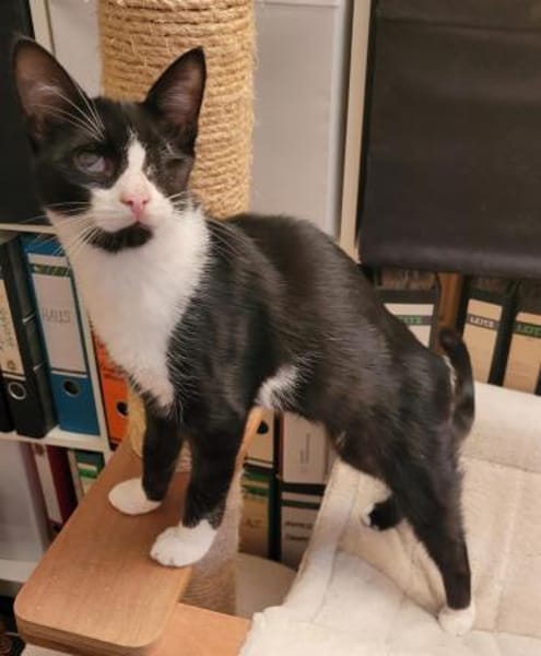 Krankheiten: linkes Auge fehlt, rechtes fast blind, negativ auf FIV und Felv getestet