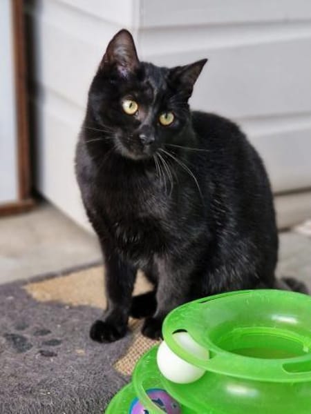 Cosma ist eine wunderschöne schwarze Katze, die als junges Kätzchen irgendwie von ihrer Katzenfamilie getrennt wurde. Nun suchen wir für sie eine Menschenfamilie, die sie liebt und ihr ein Zuhause für immer geben möchte.