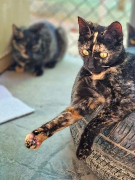 Dieses wunderschöne, schildpattfarbene Katzenmädchen ist Poppy geb. 5/25. Im Alter von ca. 10 Wochen kam sie mit ihrer Mutter und ihren 3 Schwestern ins Tierheim. Leider waren sie nicht sozialisiert und hatten große Angst vor Menschen.