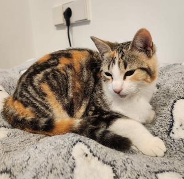 Schau mir in mein hübsches Gesicht! Das bin ich: Lulú geb. 9/25 eine dreifarbige, junge Katze.