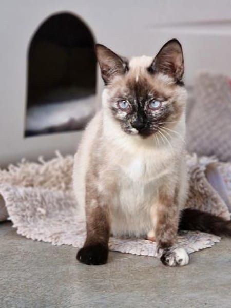 Diese wunderschöne, junge Katze ist Chip, geb. 8/25. Als sie mit ihren 3 Brüdern im Tierheim ankam, hielten wir sie zuerst für einen Kater.
