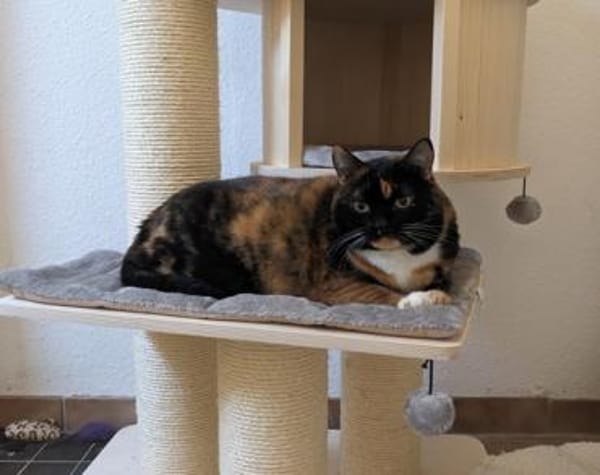 Diese pummelige Tricolor-Madame ist sehr scheu, schreckhaft und schenkt ihr Vertrauen erst mit der Zeit. Wenn sie aber soweit ist, dann grüßt sie schnurrend mit Kopfstoß und intensivem Liebesblinzeln. Streicheln ist noch nicht ihr Ding und man sollte auch nicht wagen sie hochzunehmen!