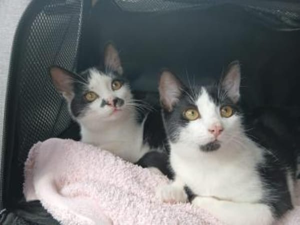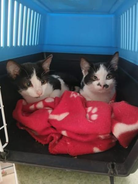 Das schwarz-weiße Doppelpack freut sich auf ihre neuen Kuschelplätze.