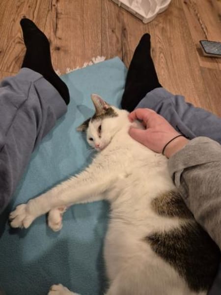 Gesundheitlich ist sie kastriert, aufgrund von FORL zahnlos und hat ein eosinophiles Granulom (allergische Hauterkrankung), das gut behandelbar ist.