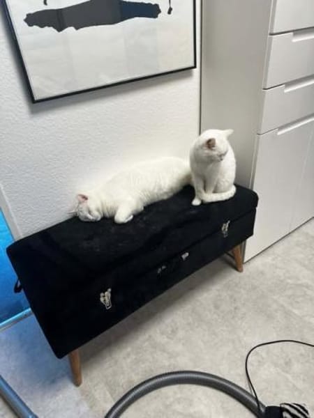 Charakter: Ipek ist eine sehr verschmuste Katze, die es liebt zu kuscheln und Nähe zu genießen. Pamuk ist ein ganz besonderer Kater mit eigenem Charme. Er liebt Kartons über alles, trinkt am liebsten direkt aus dem Wasserhahn. Ruhig und sanft genießt er die kleinen Momente im Alltag. Pamuk ist von Geburt an taub. Er orientiert sich hervorragend über Blickkontakt, Vibrationen und visuelle Reize. Lieblingsbeschäftigung der beiden: kuscheln, entspannen, Kartons erobern, auf dem Boden sonnenoder auf dem Sofa. Sie sollen zusammen bleiben, weil sie sehr aneinander hängen.