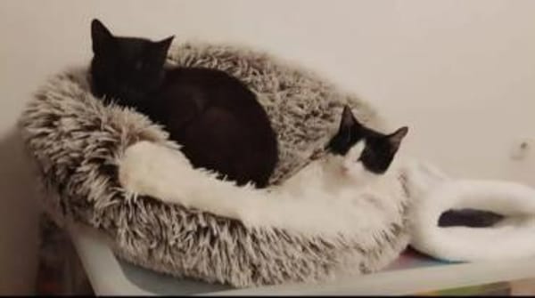 Pirata & Mini sind sehr sozial und mögen gerne mit der Federangel oder den Flauschbällchen spielen. Gerne klettern sie auch den Kratzbaum hoch und runter, um nach aktivem Spiel gemeinsam kuschelig im Körbchen zu schlafen. Bei ihrer Pflegefamilie schlafen Pirata & Molly eng angekuschelt im Bett, gerne auch bei ihrem Menschen nahe angekuschelt.