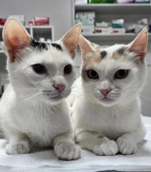 Mit den anderen Katzen auf ihrer Pflegestelle sind sie sozial und verstehen sich gut mit ihnen, ebenso mit dem Hund der Pflegefamilie, den beide lieben.