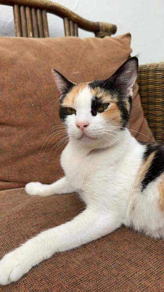Ich bin Tanya geb. 7/25 und bin noch gar nicht so lange in meiner Pflegefamilie. Mein Leben war bisher wirklich sehr bunt und abwechslungsreich, aber das ist eigentlich gar nicht so mein Ding. Als ich noch ganz klein war, lebte ich in einer Katzenkolonie und wir mussten uns irgendwie selber versorgen. Das fiel mir unheimlich schwer, denn ich hatte Angst vor den größeren Katzen, die mich oft von den Futterstellen verjagt haben. Irgendwie waren sie mir unheimlich und ich habe mich nicht getraut, mich zu wehren. Doch dann habe ich ein Haus entdeckt, in dem eine Familie wohnte, die keine Katzen hatte. Dort lebten aber einige Hunde. Als ich wieder mal draußen voll gejagt wurde, bin ich in das Haus gelaufen und habe mich im Bad versteckt. Die Familie hat mich nicht rausgeschmissen, sondern mir Futter hingestellt und mich dort leben lassen. Die ersten zwei Wochen war ich nur im Bad und habe mich nicht rausgetraut. Nach zwei Wochen wurde es dann doch langweilig und ich habe mich überwunden und die Hunde kennengelernt. Von da an durfte ganz normal in der Familie mit leben. Leider dauerte diese Zeit nicht besonders lang, denn die Familie musste aus dem Haus ausziehen und hat mich auf meine jetzige Pflegestelle weitergegeben. Das war erstmal ein Schock. Hier leben auch wieder andere Katzen, vor denen ich Angst habe, obwohl sie mir gar nichts tun. Und obendrein hat mir der Tierarzt noch 5 Zähne gezogen! Meine Pflegemama meint, ich wäre jung genug um zu lernen, dass es auch liebe andere Katzen gibt. Deshalb suche ich ein Zuhause mit einer gaaaaanz sanften anderen Katze, mit der ich mich anfreunden darf. Und ein Zuhause, in dem ich für immer bleiben darf und man mich so liebt wie ich bin, auch wenn ich viel Zeit brauche, um euch zu vertrauen. Ein vernetzter Balkon oder ein sicherer Freigang wäre toll.