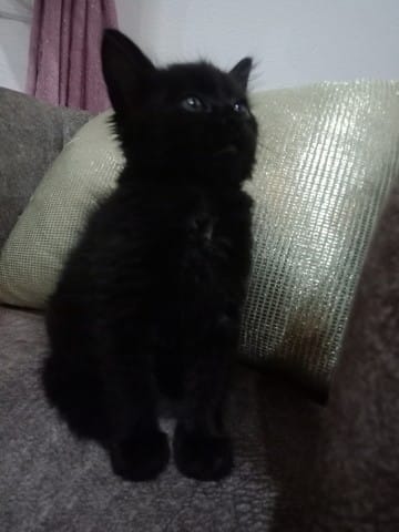das Kitten ist noch zu jung, um das jetzt schon sicher sagen zu können. Manche rein schwarzen Katzen haben diesen Schimmer, wenn sie noch ganz klein sind, aber das verschwindet meistens beim Älterwerden.